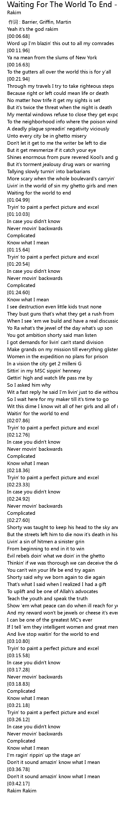 | [02:00.43] | So I wait here for my maker till it' s time to go |