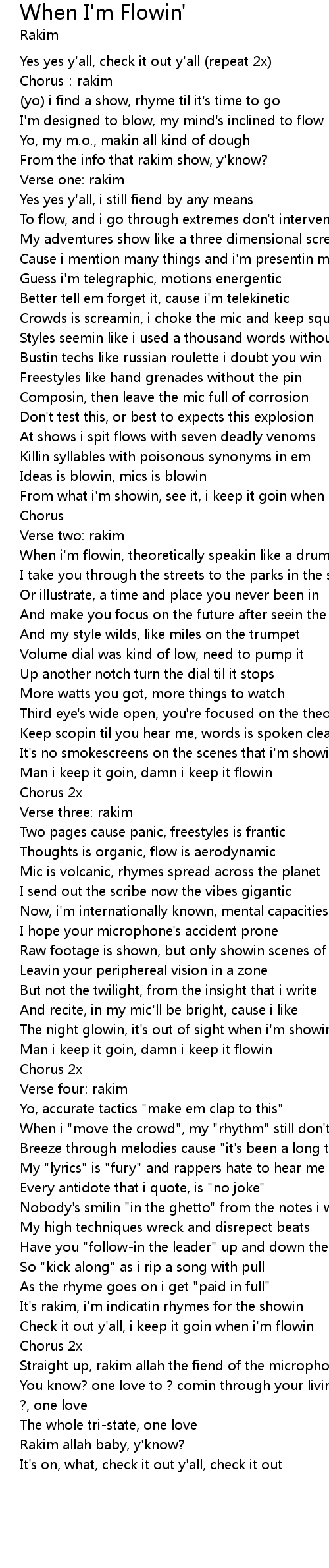 | Check it out y'all, i keep it goin when i'm flowin | |