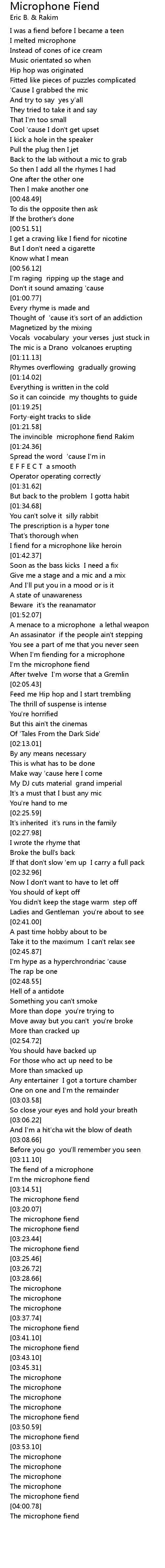 [03:13.42] I'm the microphone fiend