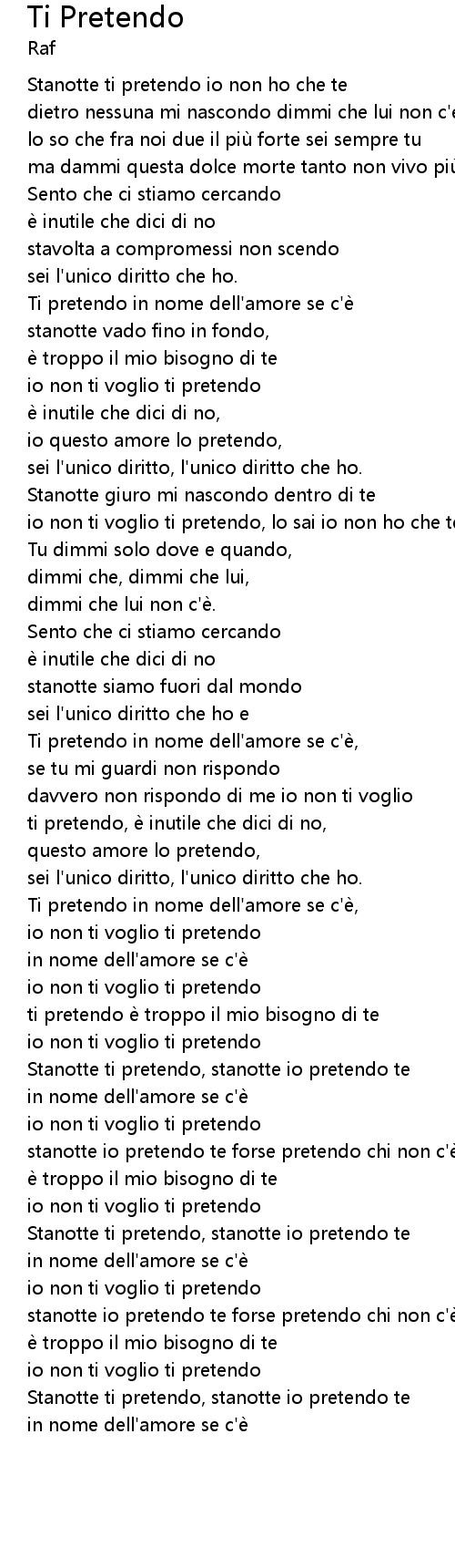 | stanotte io pretendo te forse pretendo chi non c'e. | |