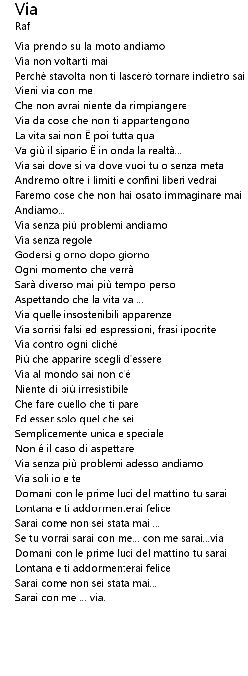 | Via al mondo sai non c'e | |