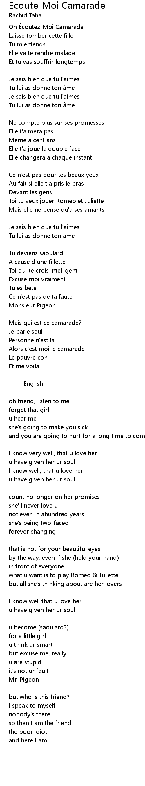 | Song | Ecoute-Moi Camarade |