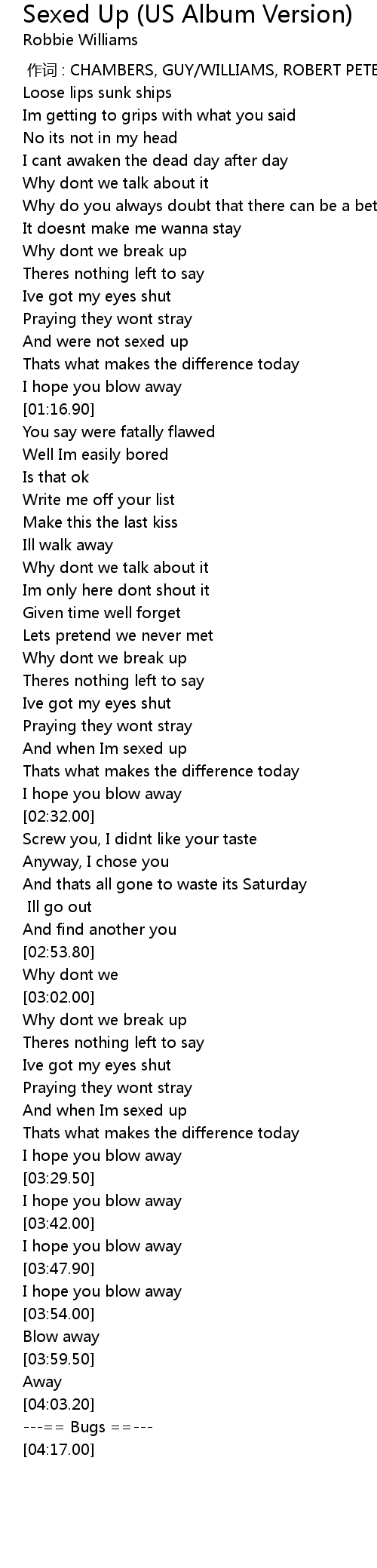 | [00:00.00] | 作词 : CHAMBERS, GUY/WILLIAMS, ROBERT PETER |