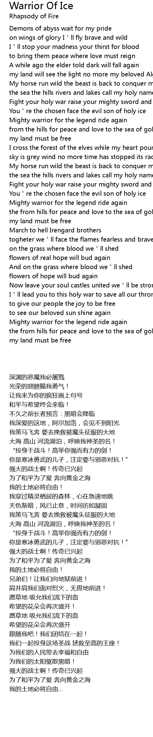 | Song | Warrior Of Ice |
