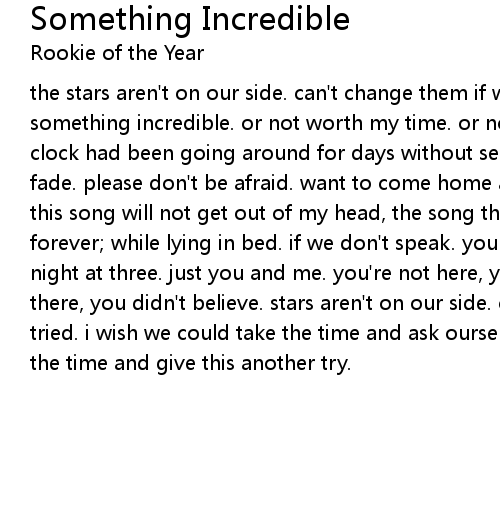 the stars aren't on our side. can't change them if we tried. and this could be something incredible. or not worth my time. or not worth your time. and this clock had been going around for days without seeing your face. your star wont fade. please don't be afraid. want to come home and stay awhile with you. and this song will not get out of my head, the song that you said, would be ours forever; while lying in bed. if we don't speak. you know when we'll meet. every night at three. just you and me. you're not here, you disappeared. you're not there, you didn't believe. stars aren't on our side. can't change them if we tried. i wish we could take the time and ask ourselves why. i wish we could take the time and give this another try. |