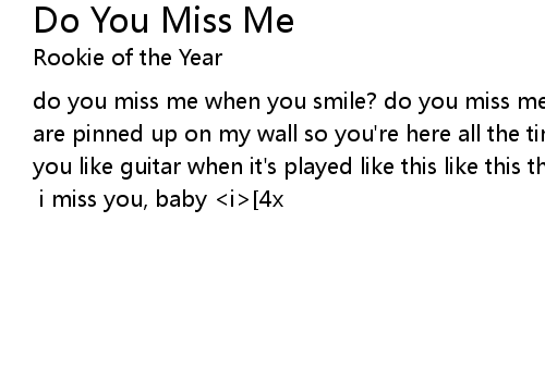| [3x] i miss you, baby <i>[4x] | do you miss me when you smile? do you miss me when i'm gone? and your pictures are pinned up on my wall so you're here all the time all of the time and i know you like guitar when it's played like this like this then i'm coming home <i> i do |