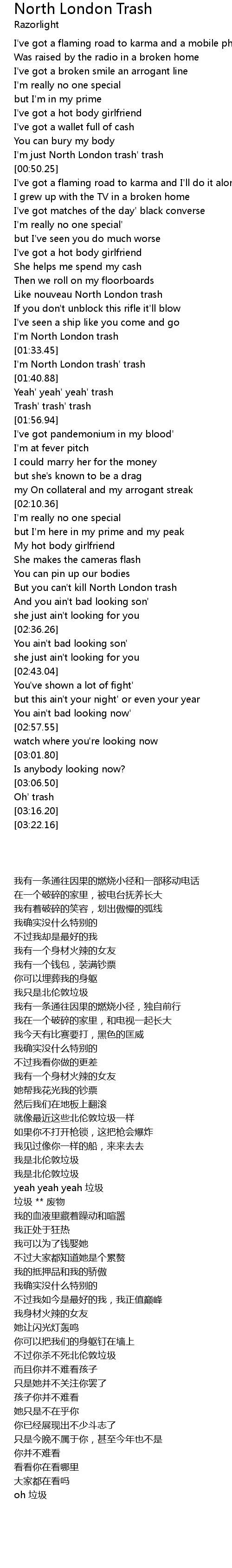 I'm just North London trash' trash |