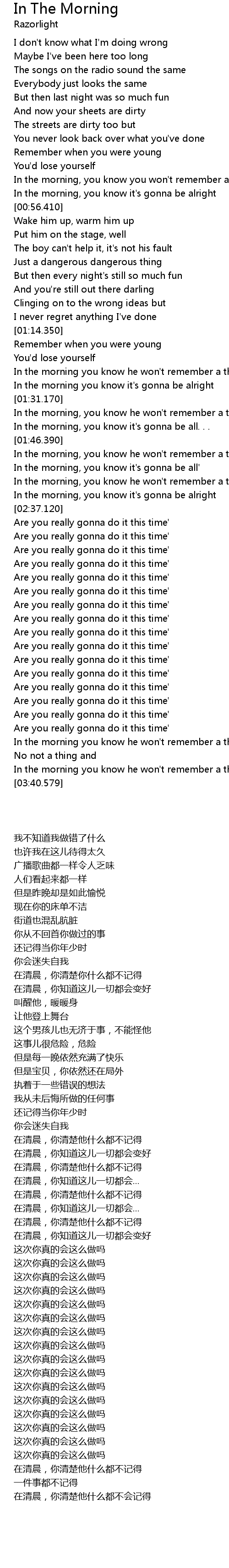 | [00:51.380] | In the morning, you know it's gonna be alright |