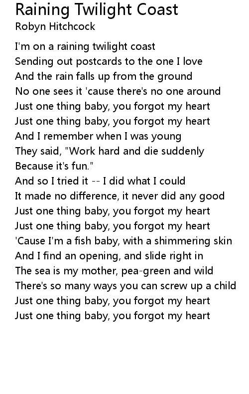 I'm on a raining twilight coast |