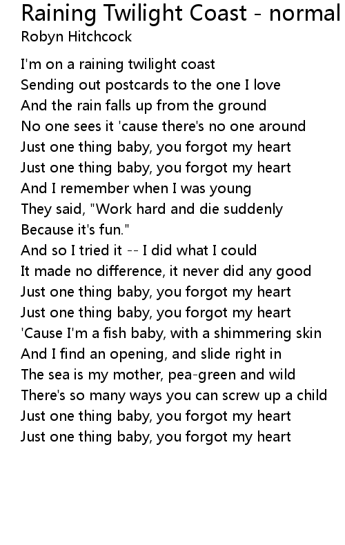 I'm on a raining twilight coast |