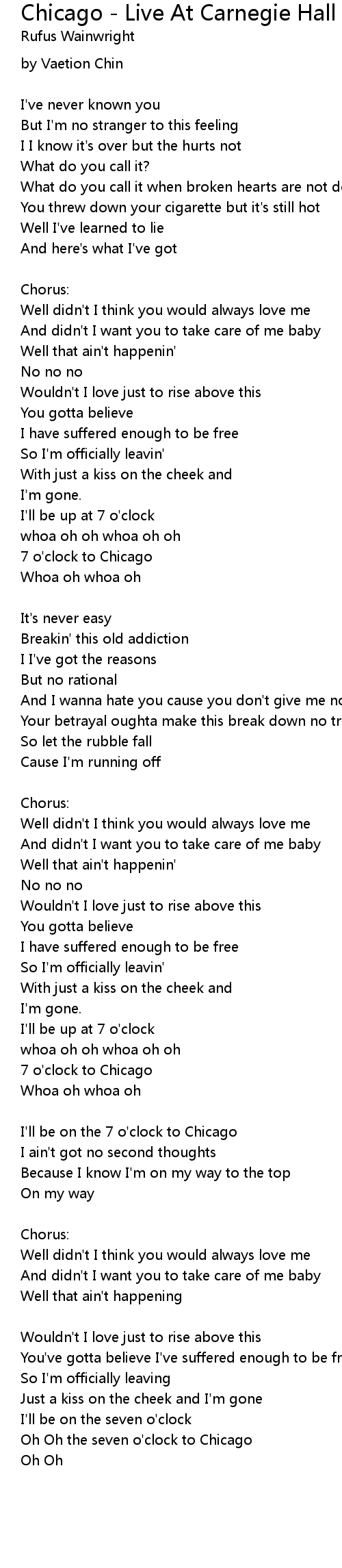 Oh Oh the seven o'clock to Chicago |