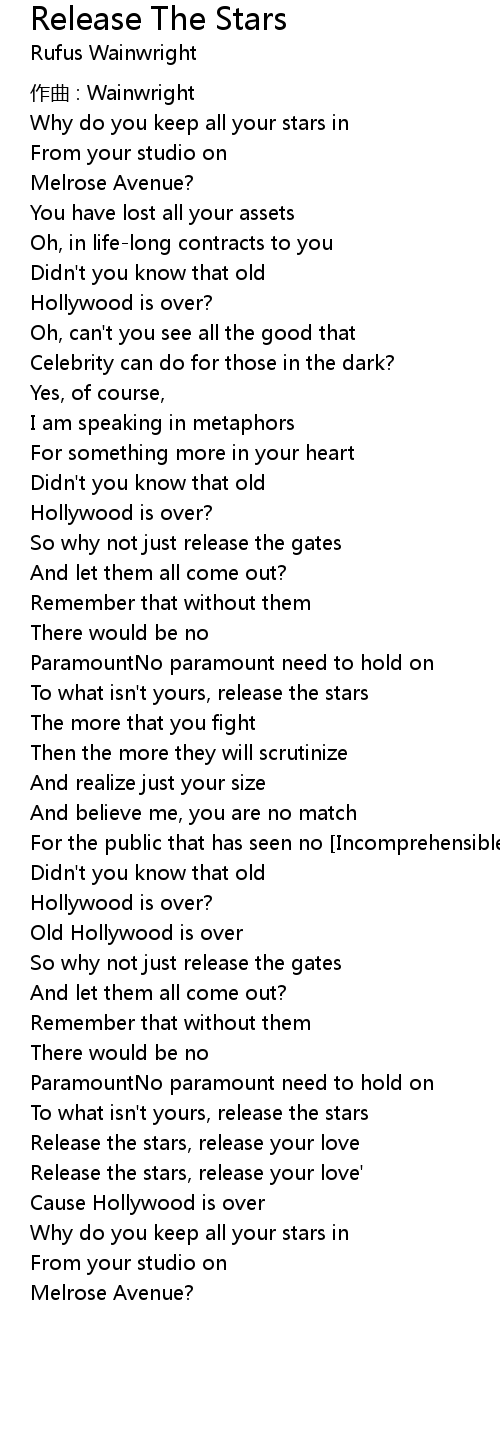 | Release the stars, release your love' | |