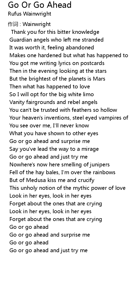 | Song | Go Or Go Ahead |