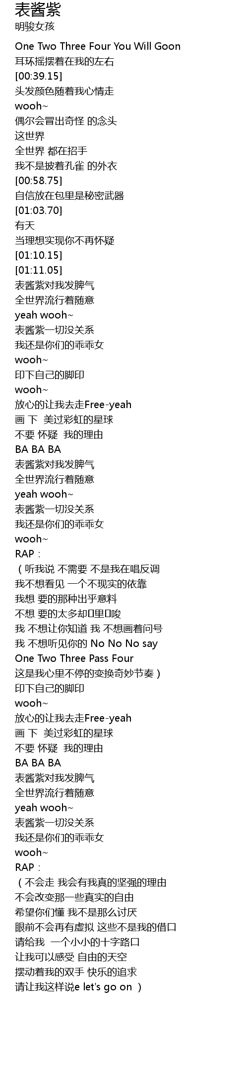 | [01:26.95] | wǒ hái shì nǐ men de guāi guāi nǚ |