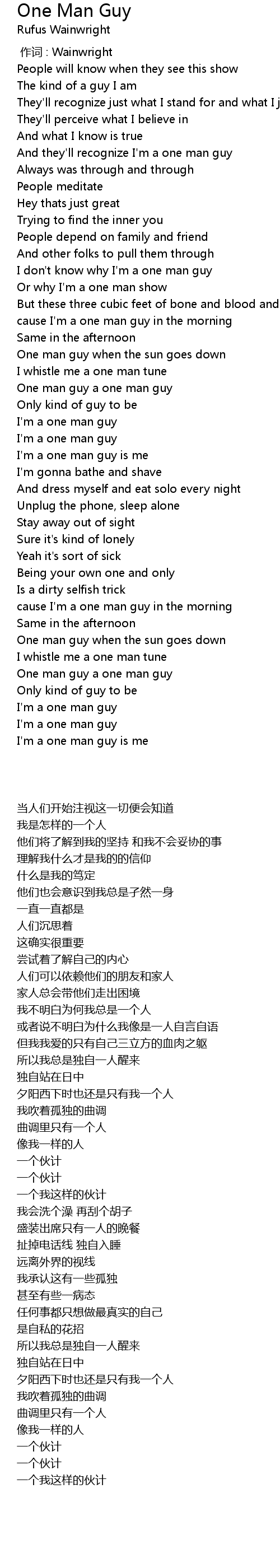 | [01:00.210] | I don' t know why I' m a one man guy |