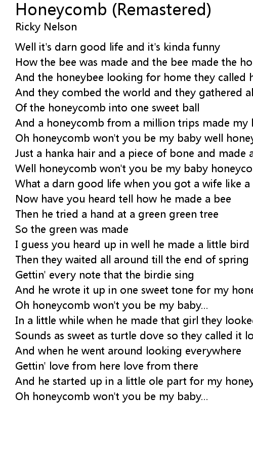 Oh honeycomb won't you be my baby well honeycomb be my own |