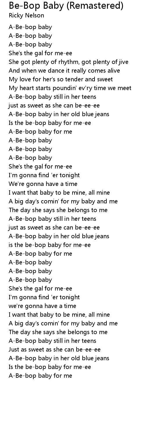 is the be-bop baby for me-ee |