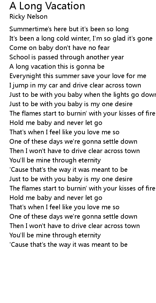 A long vacation this is gonna be |