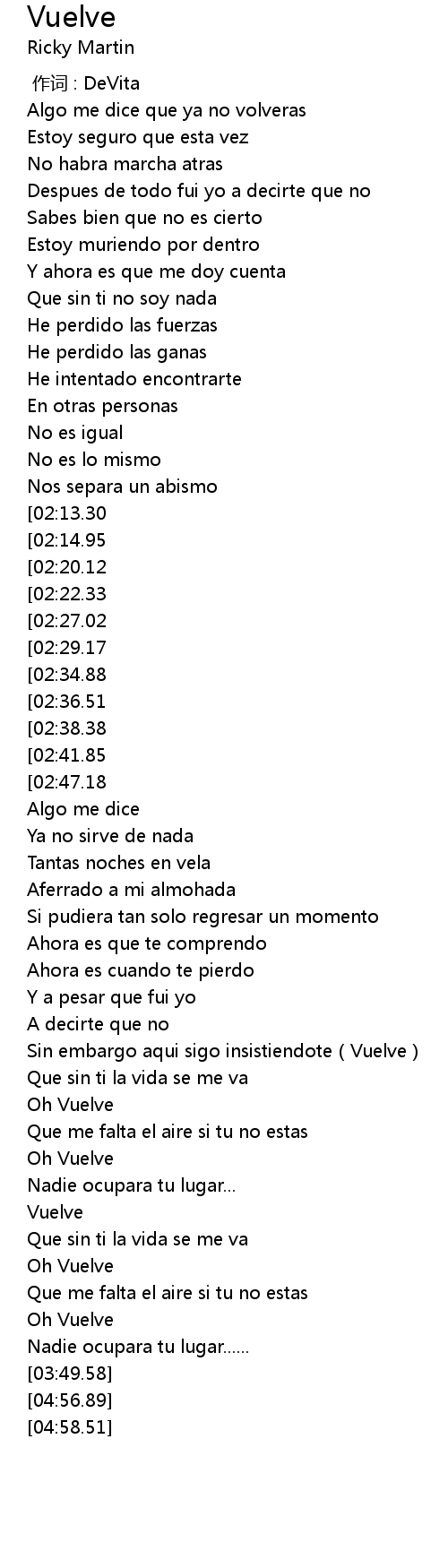 | [01:25.19][02:27.02] | Oh Vuelve |