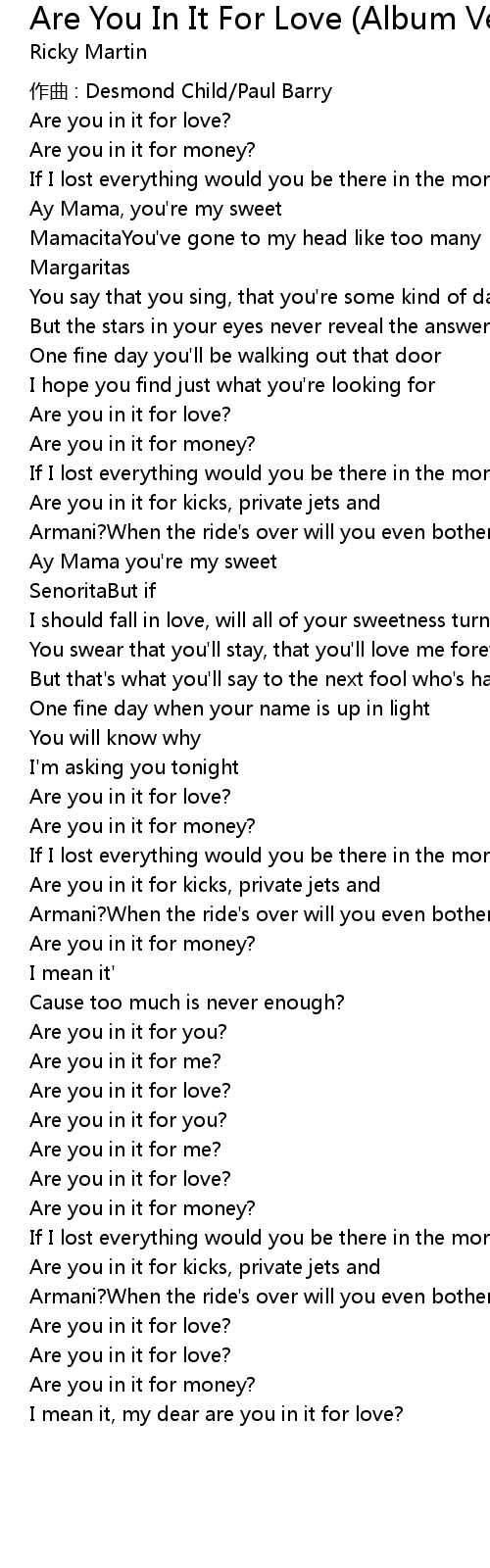 | I mean it, my dear are you in it for love? |