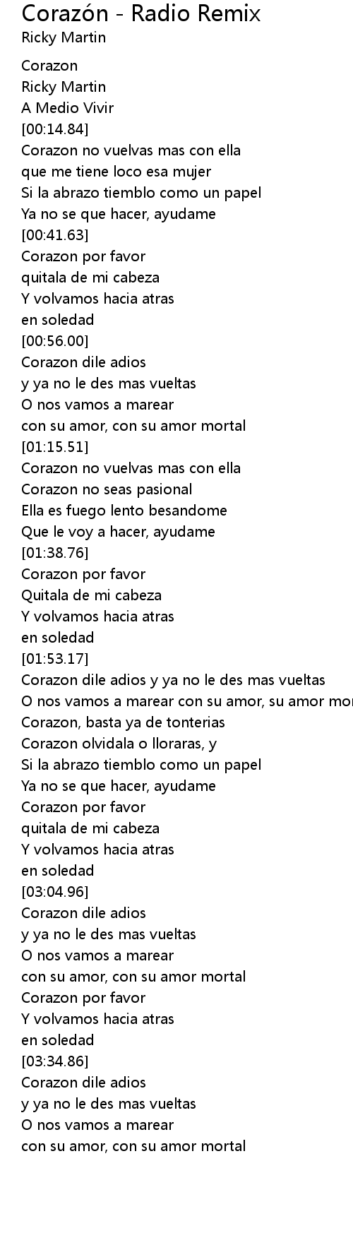Corazon olvidala o lloraras, y |