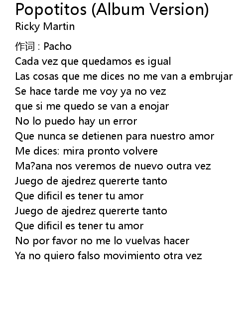 | Song | Popotitos (Album Version) |