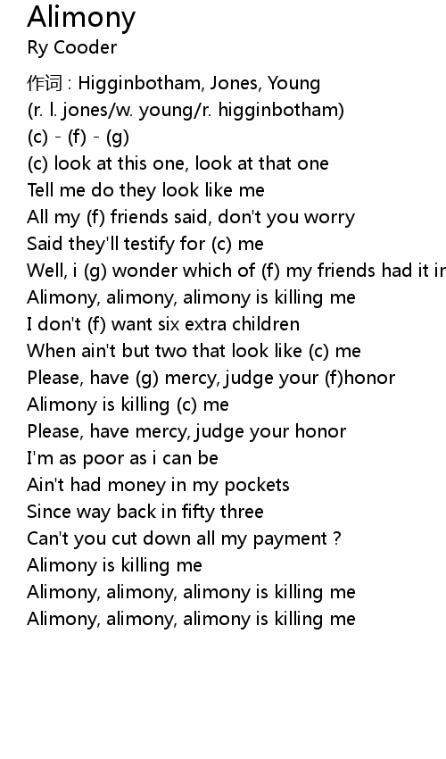 | Alimony, alimony, alimony is killing me |