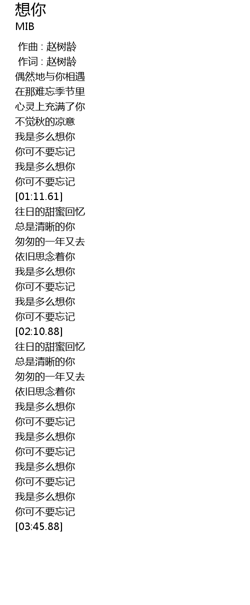 | [03:39.76] | nǐ kě bú yào wàng jì |