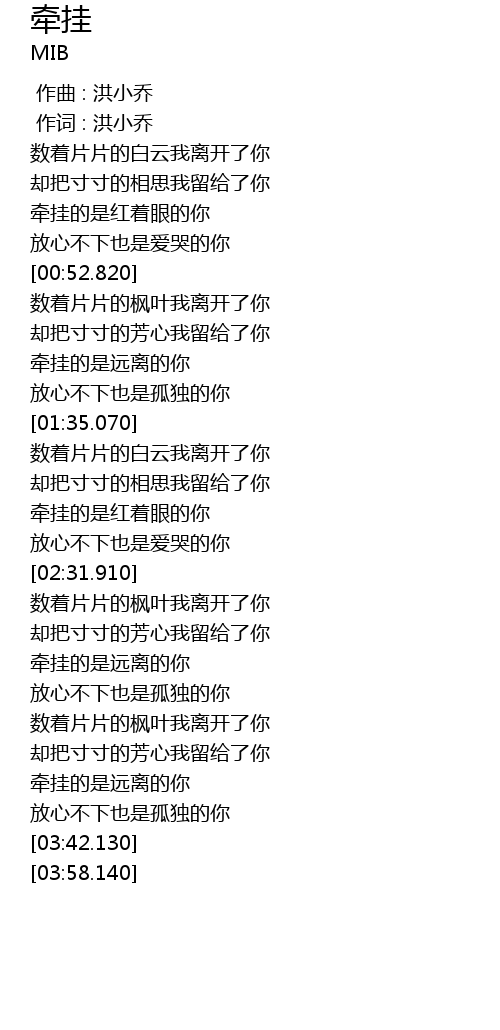 | [00:01.00] | 作词 : 洪小乔 |