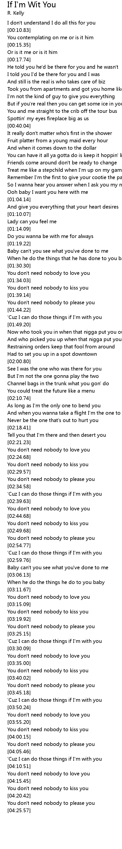 You don't need nobody to kiss you |