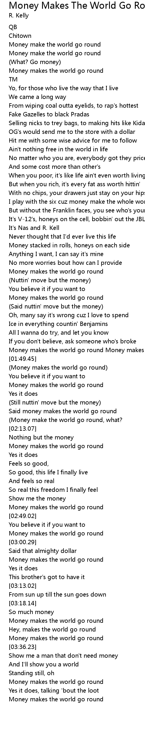 Money makes the world go round Money makes the world go round |