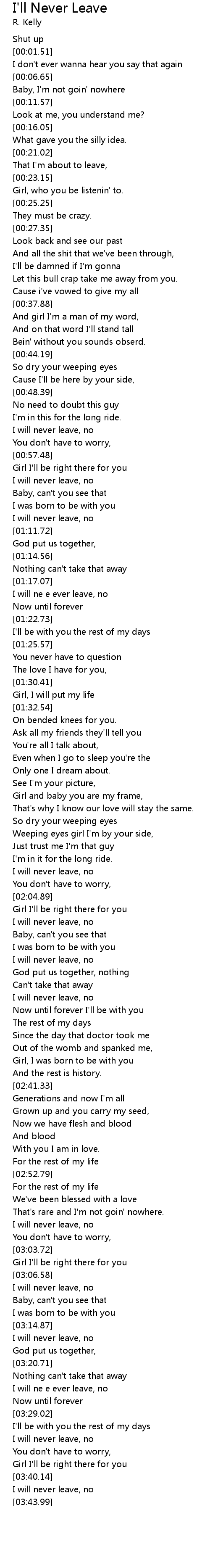I will ne e ever leave, no |