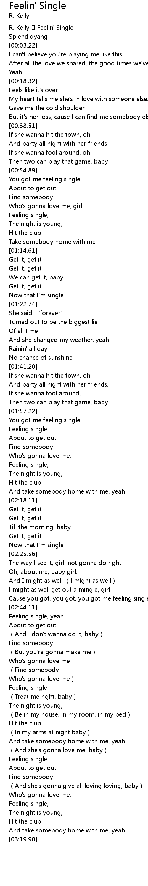 | [00:00.63] | R. Kelly Feelin' Single |