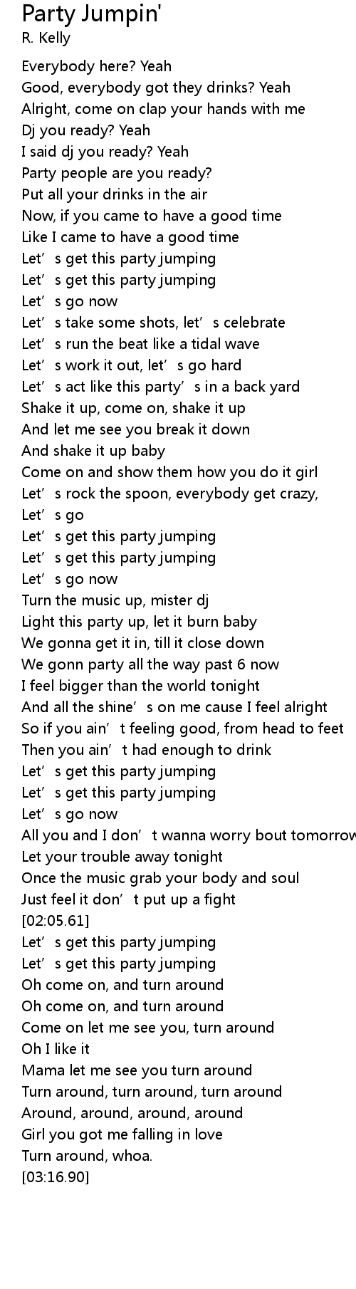 | [02:19.63] | Let' s get this party jumping |
