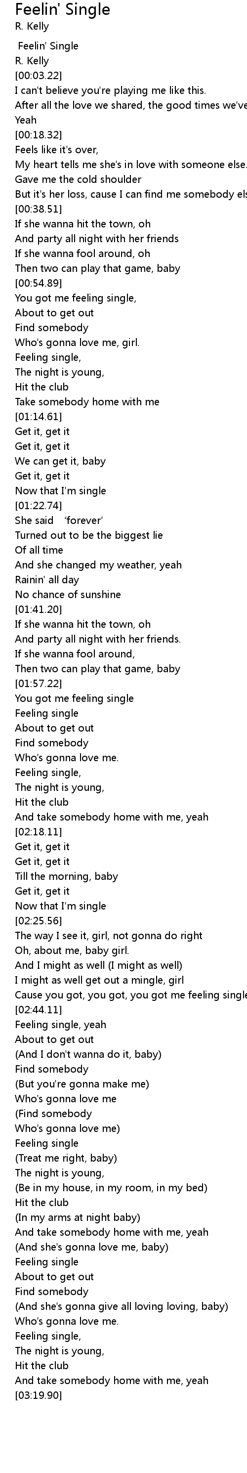 | [03:03.06] | Feeling single |