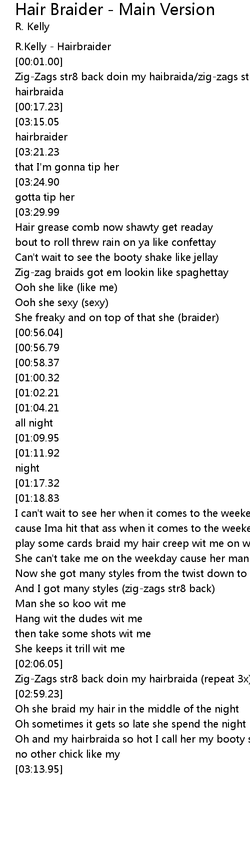 Zig-Zags str8 back doin my hairbraida (repeat 3x) |