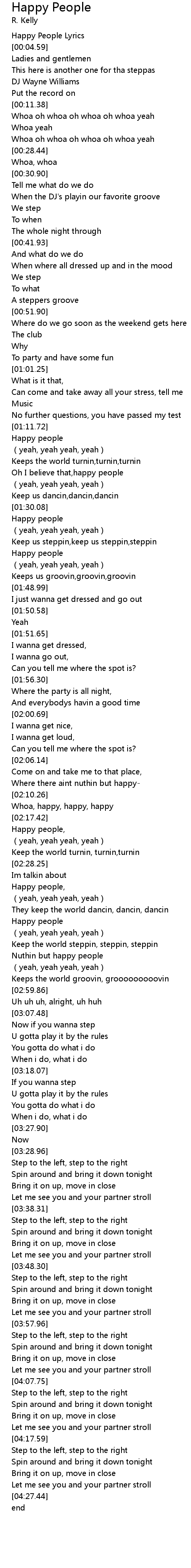 | [00:04.21] | Happy People Lyrics |