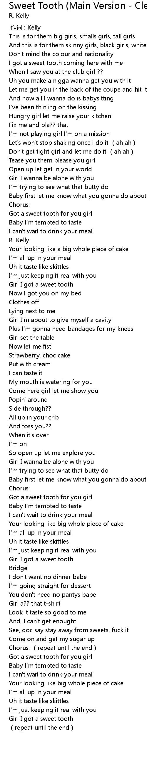 | [00:45.02] | Baby first let me know what you gonna do about this sweet tooth |