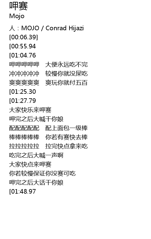 | [00:51.81] | 呷完之后大喊干你娘 |