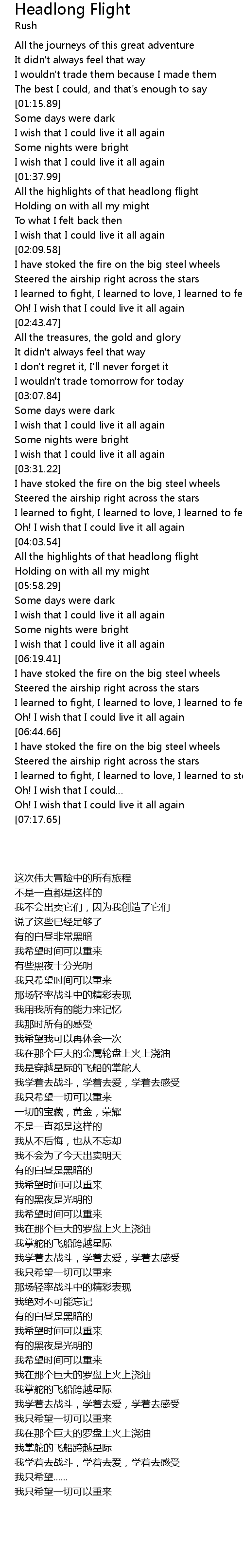 | [07:06.51] | Oh! I wish that I could live it all again |