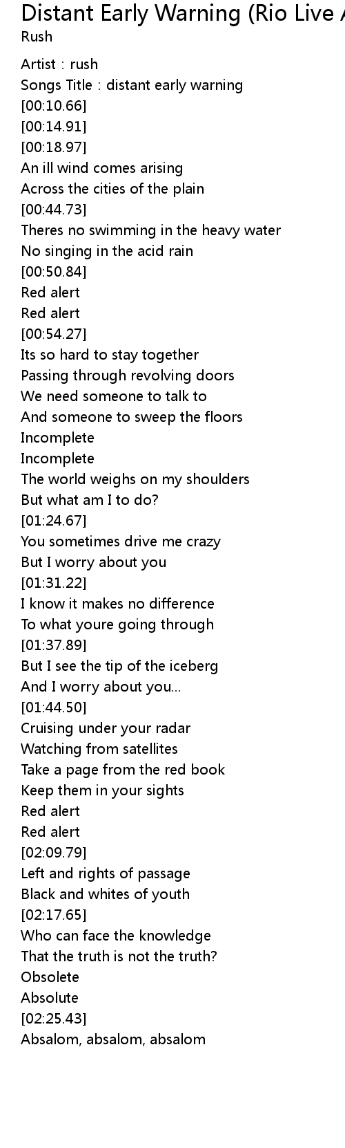 | [00:02.80] | Artist: rush |
