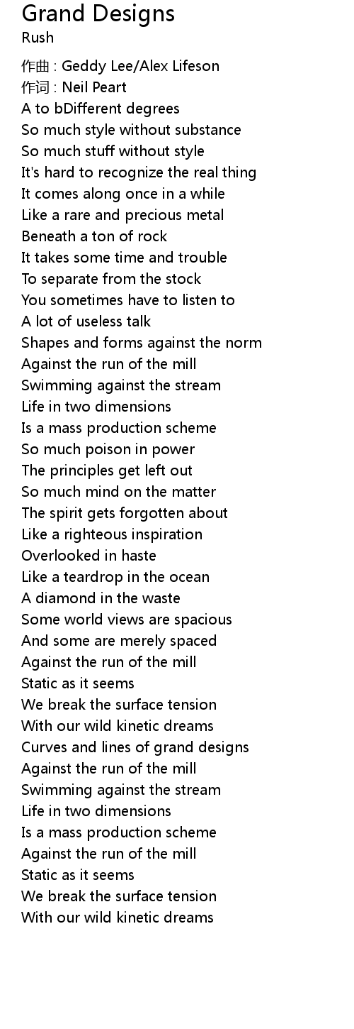 | zuò qǔ : Geddy Lee Alex Lifeson | |