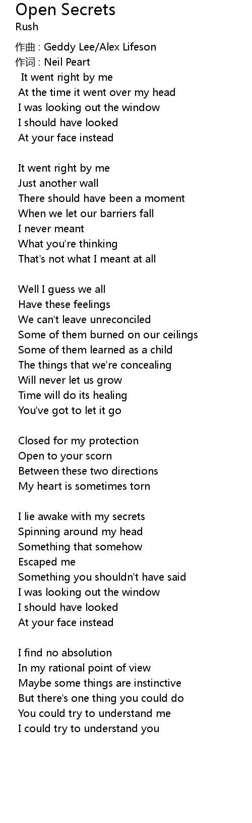| Song | Open Secrets |