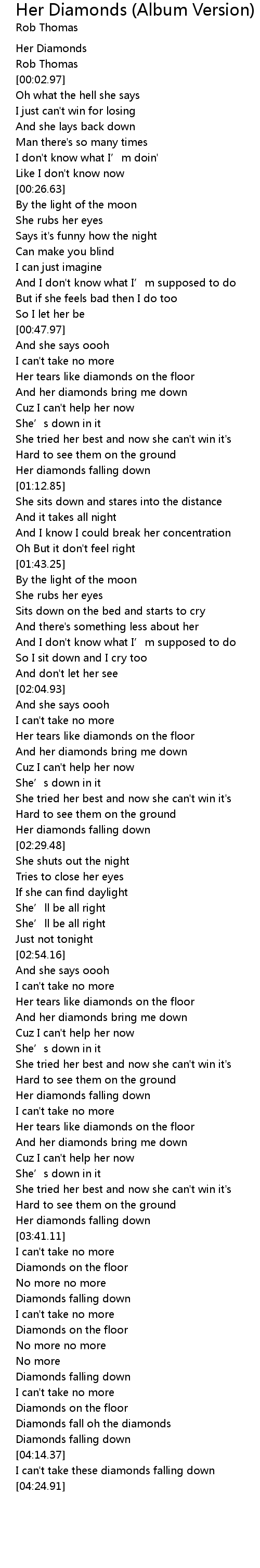 | [03:49.58] | Diamonds falling down |