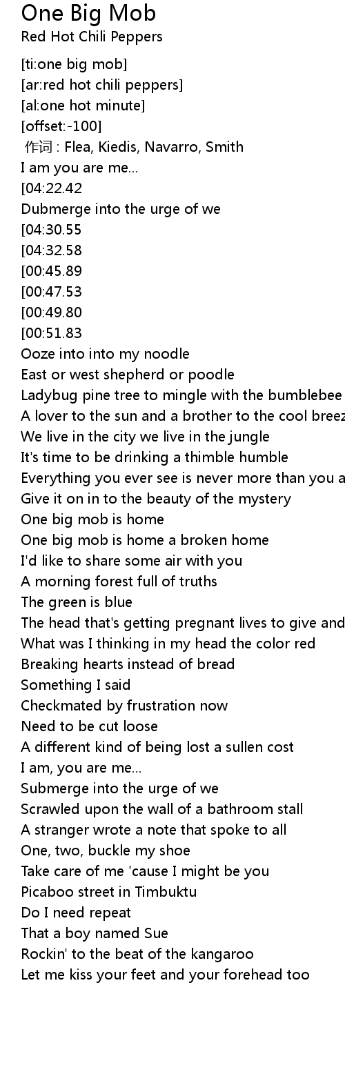 | [00:26.90][00:47.53][04:40.53][05:01.38] | One big mob aw yea aw yea |