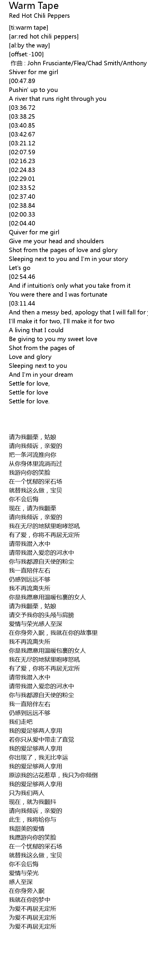 | [00:00.00] | 作曲 : John Frusciante/Flea/Chad Smith/Anthony Kiedis |