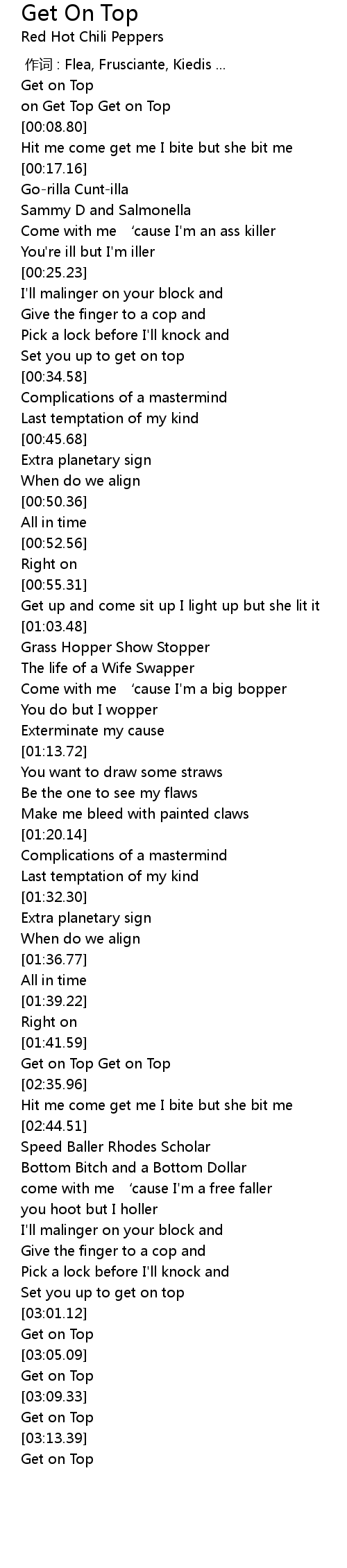| [00:00.00] | 作词 : Flea, Frusciante, Kiedis ... |