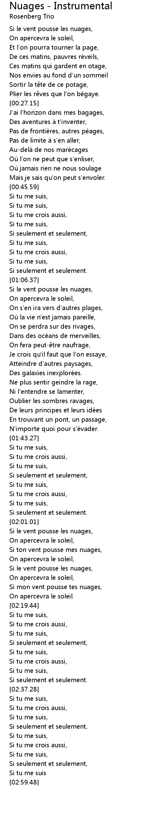 | [02:17.33] | On apercevra le soleil. |