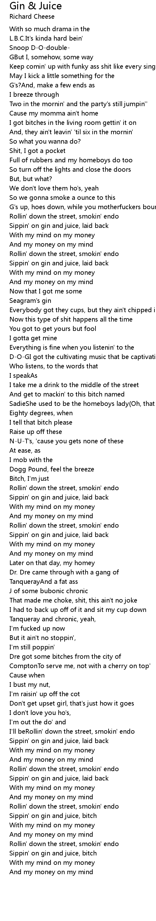 Sippin' on gin and juice, laid back |