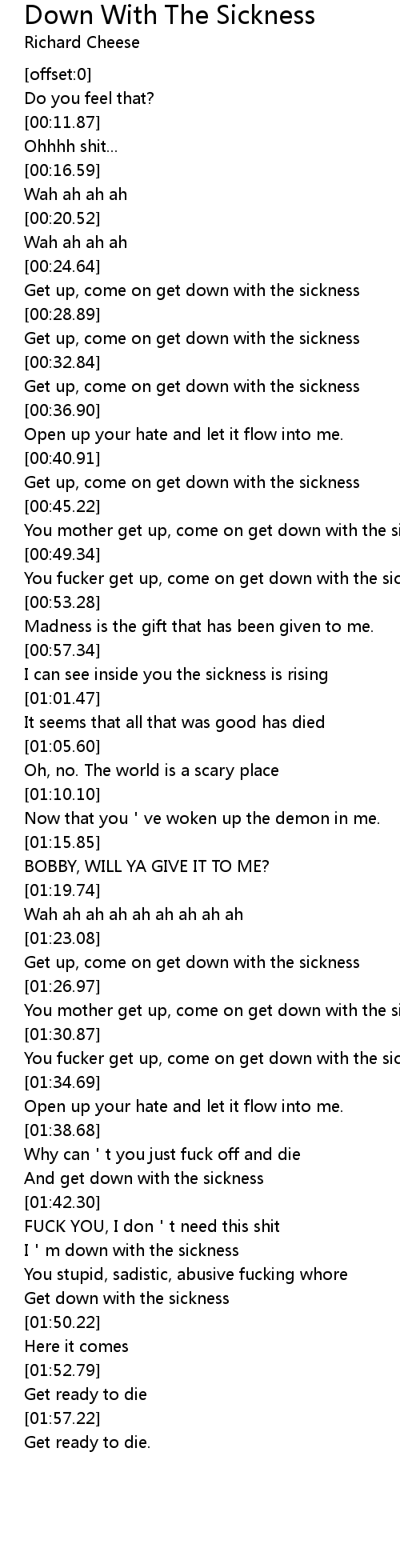 | [00:49.85] | You fucker get up, come on get down with the sickness |